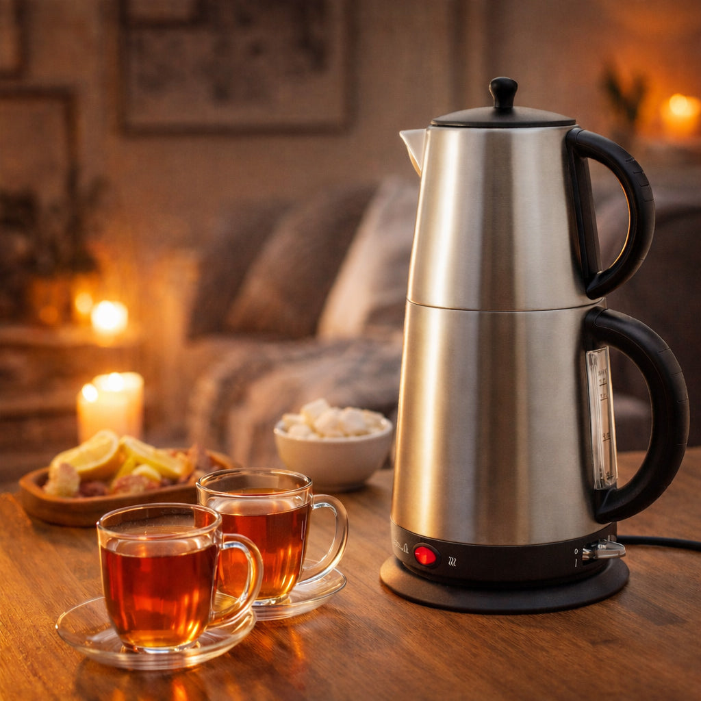 2-stöckiger Teekocher mit Warmhaltefunktion – einschalten, aufgießen, genießen.